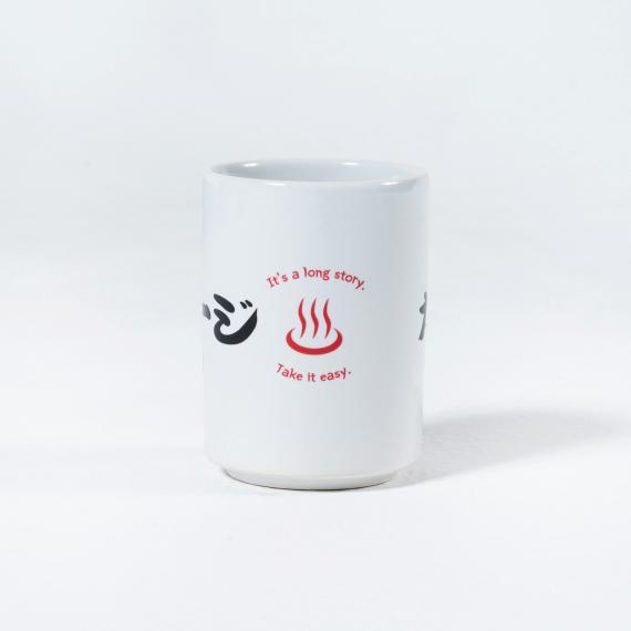 湯呑(ゆのみ)はベースが白無地のシンプルな長湯呑です。容量は約270mlのちょどいい大きさ。厚みもあり、持った時の程よい重さは質の良さも◎。