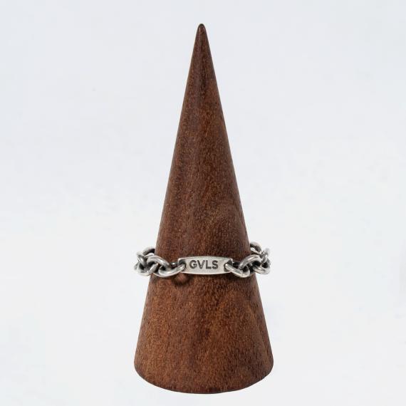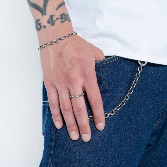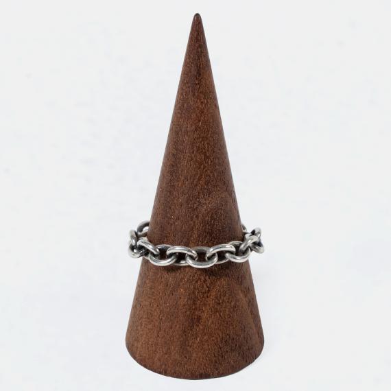 チェーンをそのまま落とし込んだデザインが印象的なシルバーリング。チェーンの立体感や細かなニュアンスが手元にさりげない存在感を与えます