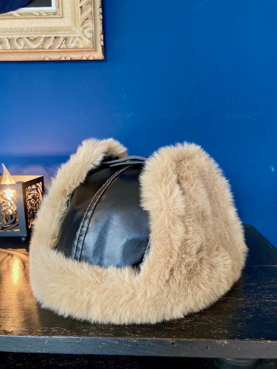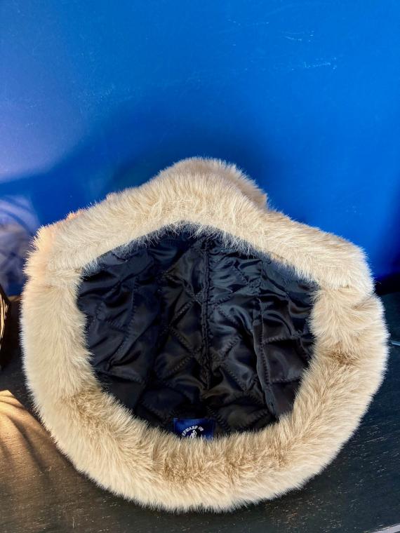 フェイクレザーに、ボリュームのある柔らかアクリル フェイクファー。内側には中綿入りキルティングが施されております。