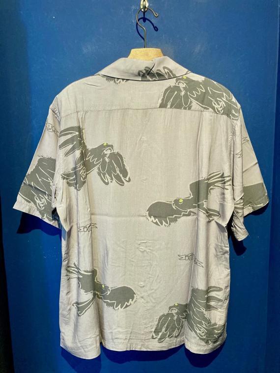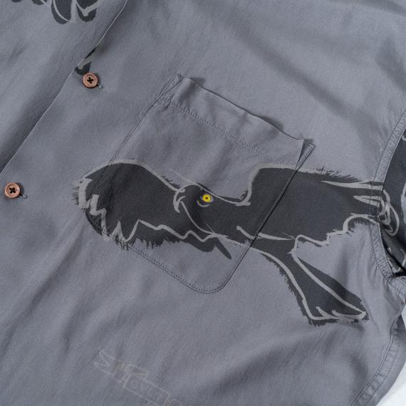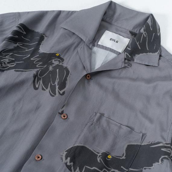 今季も独特な画風を持つ中村達也氏手描きのイラストレーションがデザインされたオリジナルの生地のGVLS夏のイメージとして定番化されているアロハシャツ。 ”鳥” のイラストのその自在に飛び回る姿、空気をそのまま纏えるよう、大きめの柄・色・素材の“軽やかさ”に徹底的にこだわったアイテムとなっています。