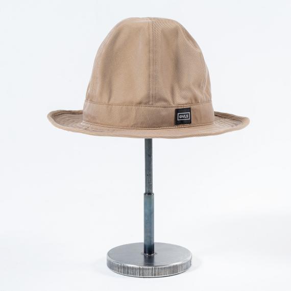形状記憶機能のあるツイル素材を使用。高さのある帽体とツバを自由に整形可能。